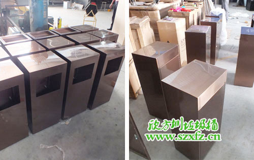 作為一家酒店,采購不銹鋼垃圾桶要求極高。垃圾桶的選擇不容馬虎,兩者搭配得融入酒店的文化氣息。我們欣方圳公司業(yè)務(wù)部人員,根據(jù)酒店的特色給他推薦了一款C60方形不銹鋼果皮箱。洽談中對方對我們此款垃圾桶很是滿意,只不過顏色需要改善。我們設(shè)計師在對方的提議中,為他把顏色改為了土豪金色,高端大氣,上層次。本款采購的不銹鋼果皮箱規(guī)格為:350*350*680mm,方形設(shè)計,采用304#優(yōu)質(zhì)砂光不銹鋼材料模壓成型,金屬亮澤,高雅美觀跟酒店搭配在一起,可謂是天作地和一對。