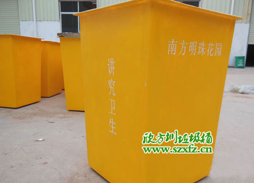 欣方圳為南方明珠花園定做了50個玻璃鋼垃圾桶桶身,客戶要求只采購桶身,不需要配置桶蓋,并對桶身的外觀和細節做了相應的調整和要求。