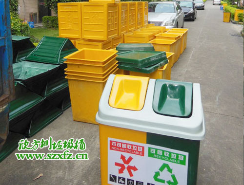 年前答應過梅州顧客,深圳總部上班時就把年前定做的50個玻璃鋼垃圾桶,按期完成交貨。梅州顧客的這款A23玻璃鋼分類垃圾桶規格為:770*550*1000mm,按照顧客的要求制作。玻璃鋼垃圾桶不帶底座,玻璃鋼垃圾桶內蓋/桶身,一邊嫩綠色,一邊絡黃,玻璃鋼垃圾桶外蓋白色,不要貼貼紙,按客戶要求絲印,印兩面,印紅色。此款玻璃鋼垃圾桶發物流運送到梅州,貴司針對深圳市區以外不親自配送的貨物,必須打木架包裝。物流費用,貴司不賺差價。按照物流公司的貨物重量大小,平方米體積來計算貨物,保證貨物萬無一失,到達指定目的地。