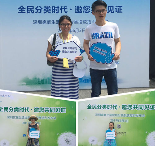 發布會中,深圳市人大代表肖幼美、市政協委員李毅、公益組織代表及市民家庭代表先后上臺呼吁“垃圾分類,人人有責”,并倡議廣大市民使用《指引》,堅持實施垃圾分類。李毅建議,生活垃圾分類教育應從幼兒園抓起,在發布《指引》的同時還應暢通市民監督舉報渠道,讓“人人有責”落到實處。