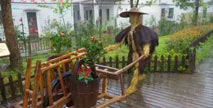 平坦?jié)崈舻乃嗦?,兩旁排列整齊的綠化帶,走進浦江縣白馬鎮(zhèn)蘭塘村,各種鮮花競相綻放,但更奪人眼球的,是沿線每隔一段距離就放置著的精致“小木屋”。兩只供垃...