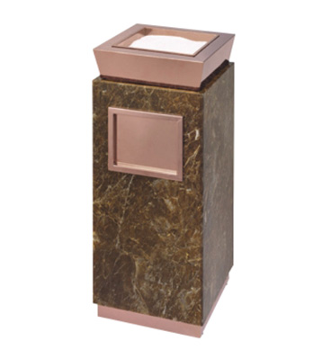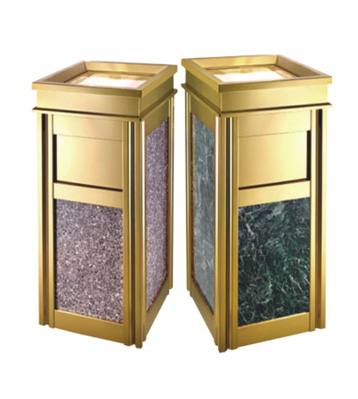 欣方圳為深圳嶺南天潤物業公司提供了一批室內垃圾桶,材質有鈦金類和鐵板噴塑類,外觀精美,使用價值高。 D272皇家座地煙灰桶規格:300*300*685,D295垃圾桶的規格為310*310*740,采用不銹鋼經鍍鈦處理,專業除