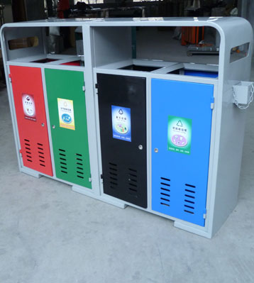 F139戶外鋼板四分類垃圾桶