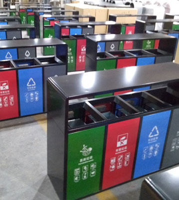 戶外4分類垃圾桶批量生產圖