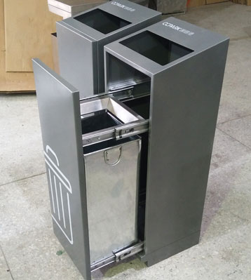四分類果皮箱導軌推拉打開桶門!